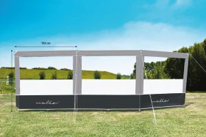 Speciaal voor seizoenskampeerders is er de verzwaarde Patio-voorzonluifel, standaard geleverd met twee uitritsbare zijwanden, ramen en slikranden.